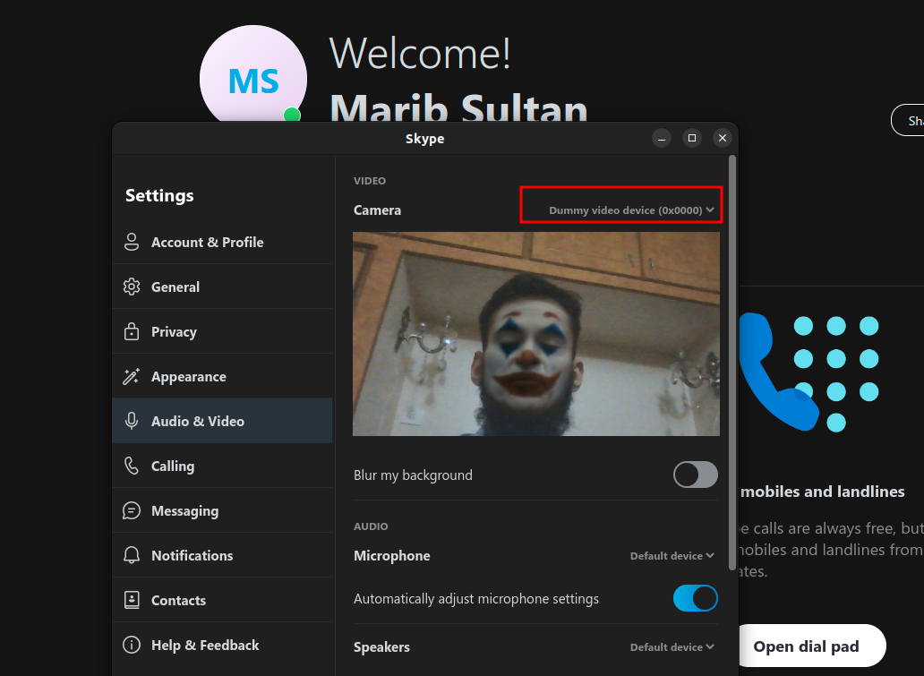 Note Chrome seems to block virtual cameras for some reason, but Firefox, Skype and MSTeams work just fine.
